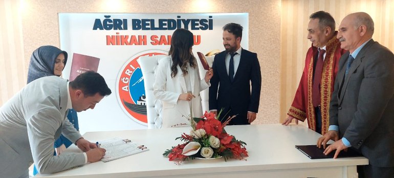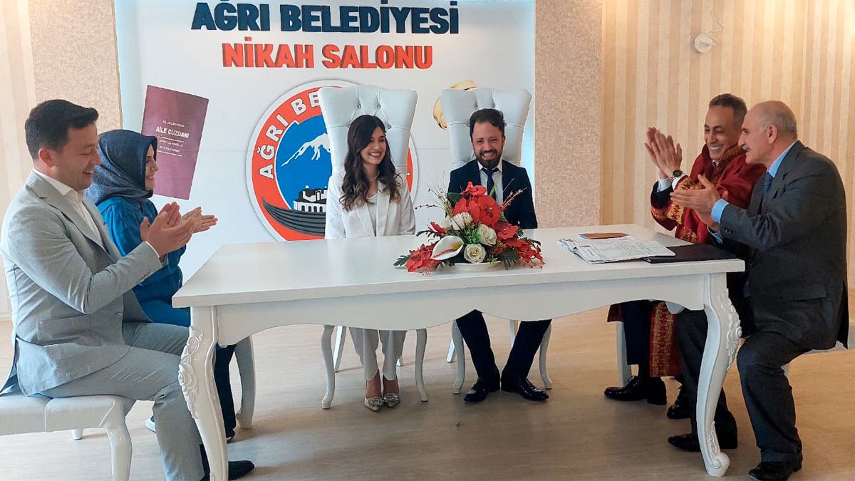 Ağrı Belediye Başkanı Metin Karadoğan, Eleşkirt ilçesinde görev yapan genç öğretmen çift Şadiye Gezer ve Yusuf Yılmaz'ın nikahını kıydı. Başkan Karadoğan, göreve başladığı günden bu yana Ağrı Belediye Başkanı olarak ilk kez bir nikah törenine katıldı.