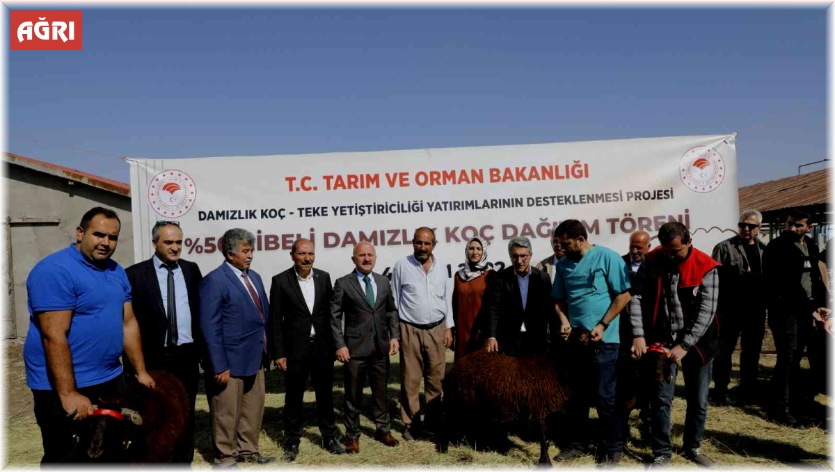 Ağrı - Ağrı'da, Damızlık Koç Tipi Yatırımlarının Desteklenmesi Projesi çerçevesinde küçükbaş hayvanda kaliteli verimi arttırmak amacıyla, yüzde 50 hibeyle verilen Damızlık Koç Dağıtım Töreni gerçekleştirildi. Toplamda 53 yetiştiriciye 179 koçun dağıtıldığı programda yetiştiriceler koçlarına kavuşmanın sevincini yaşadı.
