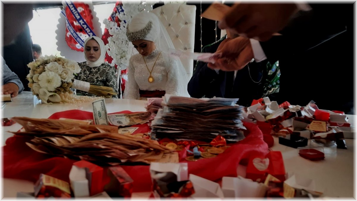 Ağrı - Ağrı Taşlıçay ilçesinde, Recep Tayyip Erdoğan Parkı Taşlıçay Belediyesi Kır Düğün Salonunda düzenlenen Pleki aşiretine mensup Samancı ailesinin düğün törenine katılan davetliler, Servet ve Meltem çiftine altın takmak için birbiriyle yarıştı. 2 bin kişinin katıldığı düğün töreninde siyasetçiler, bürokrasiler ve aşiret mensubu kişiler düğünü halaylarla kutlarken, gelin ve damada 1 milyon değerinde takı takıldı.