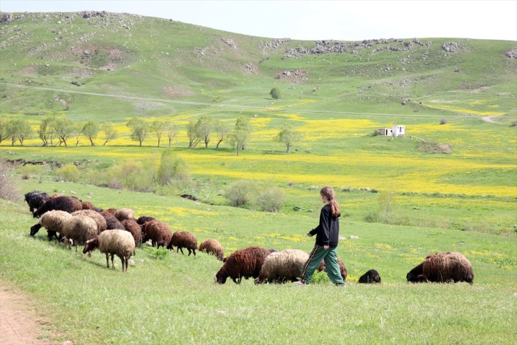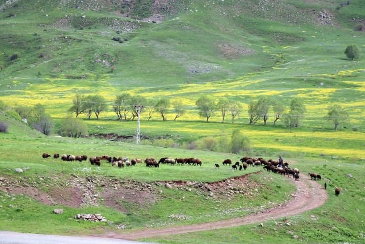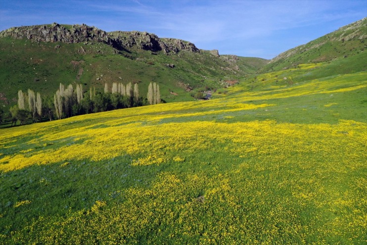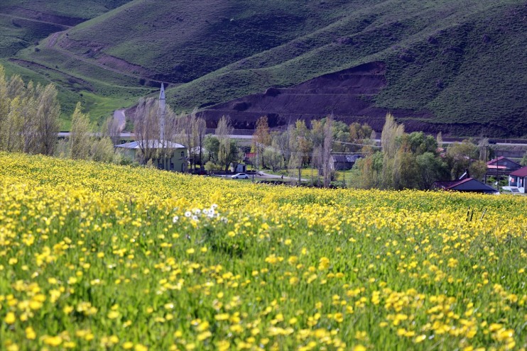 Ağrı (AA) - Ağrı'da ilkbaharın gelişiyle dağ köylerindeki araziler rengarenk çiçeklerle kaplandı.
