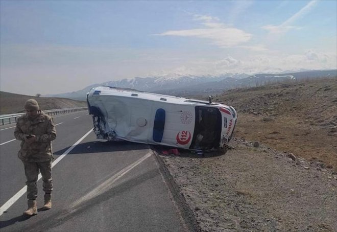 T.K. idaresindeki 04 AAR 256 plakalı ambulans, Patnos-Ağrı kara yolunun Ceylanlı köyü mevkisinde refüje çarparak devrildi.
