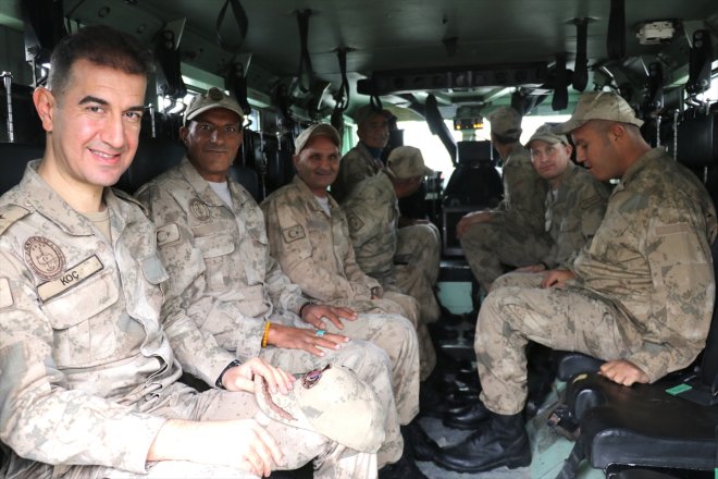 Çay eşliğinde çeşitli ikramlar yapılan engelliler, daha sonra komutanların gözetiminde askeri araçla bir süre alanda gezdirildi.