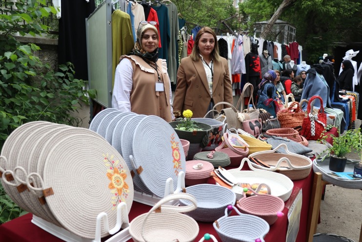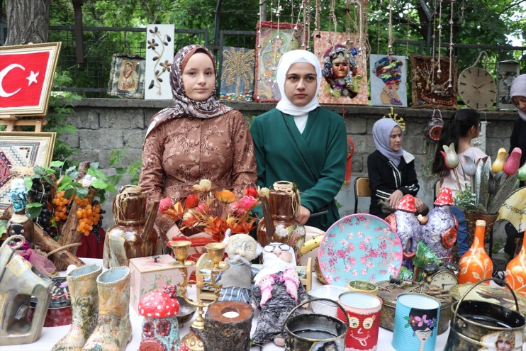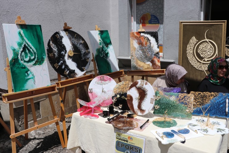 Ağrı (AA) - Ağrı'da Halk Eğitim Merkezi bünyesinde kursiyer kadınlarca atık malzemeler kullanılarak hazırlanan resim tabloları, çanta gibi çok sayıda el emeği ürün stantlarda sergilendi.