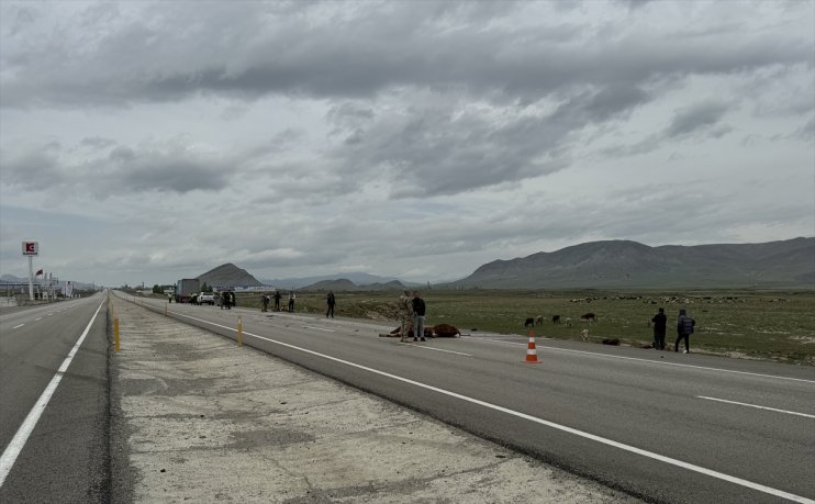 Doğubayazıt-Çaldıran kara yolu ayrımına yakın mevkide arazide otlayan ve yola çıkan 3 büyükbaş hayvana tır çarptı.