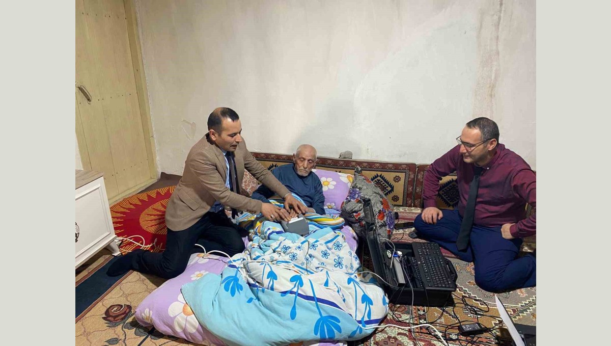 Ağrı İl Nüfus Müdürlüğü ekipleri, kent merkezine bağlı Hıdır köyünde ikamet eden 89 yaşındaki yatağa bağımlı Hasan Akbaş'ı evinde ziyaret ederek kimlik yenileme işlemini gerçekleştirdi.
