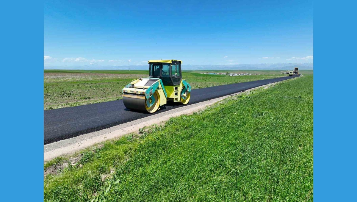 Ağrı'nın Yukarı Ağadeve köyünde Bitümlü Sıcak Karışım (BSK) asfalt yol serim çalışmaları tamamlandı.