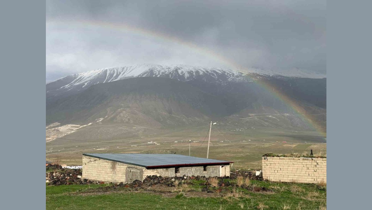 Iğdır'da günlerdir etkili olan yağmurlu hava, yerini güneşli ve açık bir havaya bıraktı. Yağmur sonrası ortaya çıkan güneş ışınları, Ağrı Dağı eteklerinde gökkuşağı oluşmasına neden oldu.
