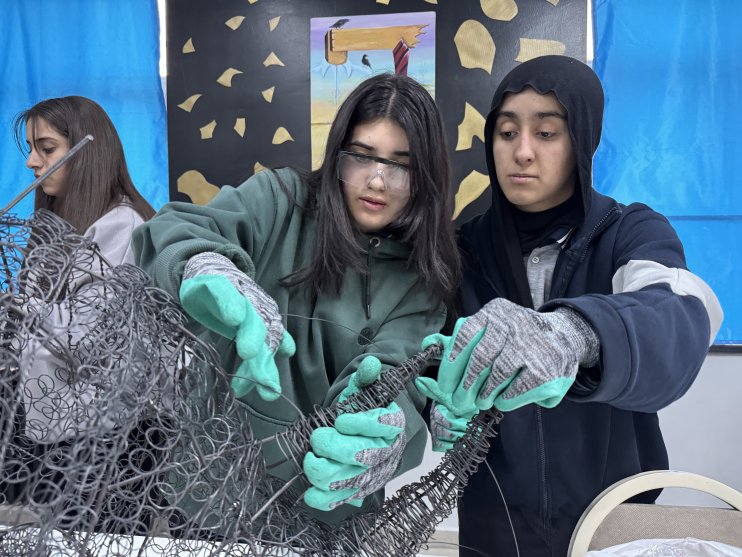 Görsel Sanatlar Öğretmeni Ahmet Kılıçaslan, öğrencilere geri dönüşümle sanat yapmanın önemini öğrettiklerini belirterek, "Atık malzemeleri öğrencilerimizden topluyor, depoluyor ve sanatsal çalışmalarda kullanıyoruz. Öğrencilerimiz batıdaki akranlarına göre malzemeye ulaşma konusunda zorlanabiliyor, ancak biz bu durumu avantaja çevirerek çöpten sanata dönüşüm sağlıyoruz" ifadelerini kullandı.
