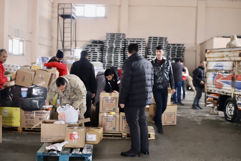 Ağrı - Merkez üssü Kahramanmaraş merkezli olan ve 10 ili etkileyen 7.7 ve 7.6 büyüklüğündeki depremler nedeniyle Ağrı Valiliği öncülüğünde başlatılan yardım kampanyaları ile kullanılmamış kıyafetler, gıda, battaniye ve kişisel hijyen malzemeleri başta olmak üzere deprem bölgesinde kullanılacak yardım malzemeleri Afet Acil Sosyal Yardım (ASYA) Ayni Bağış Deposu, Türk Kızılayı Ağrı Şubesi, Ağrı Belediye Başkanlığı Hizmet Binası'nda toplanarak afet bölgelerine gönderilmek üzere hazırlanmaya başlandı. 8 tır ve 1 kamyon dolusu yardım malzemesi ve toplamda 28 tane kamyon ve iş makinası afet bölgesine ulaştırılmak üzere yola çıktı.