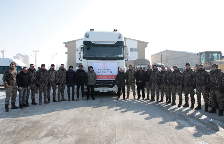 Ağrı - Ağrı Emniyet Müdürlüğü personellerinin destekleriyle toplanan odun ve sobalar afet bölgesine gönderilmek üzere ASYA Ayni Bağış Kabul Deposunda toplandı. Toplanan eşyalar Ağrı Valisi Dr. Osman Varol ve İl Emniyet Müdürü Nihat Özen'in de katılımıyla tıra yüklenen odun ve sobalar depremzede vatandaşlara ulaştırılmak üzere yola çıktı.
