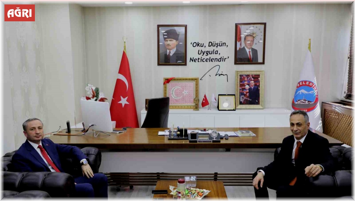 Ağrı İl Milli Eğitim Müdürü Hasan Kökrek, Belediye Başkanı Metin Karadoğan'a hayırlı olsun ziyaretinde bulundu.