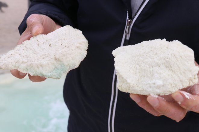 "Burada aynı zamanda kükürt kokusu alıyorsunuz. Kükürt kokusu normalde yaşlı kaplıcalarda çok fazla karşımıza çıkmaz. Afyonkarahisar'a gittiğinizde bu kokuyu çok almazsınız. Bu bölgede çok genç bir sistem olduğunu ve derinde de zengin bir magmanın olduğunu gösteriyor ki karşımıza bu şekilde kükürt kokusu ya da bazı noktalarda hafif demir içeren yapıları da gördük. Kaplıcalar aynı zamanda ekonomik olarak madenleri de üreten sistemlerdir."
