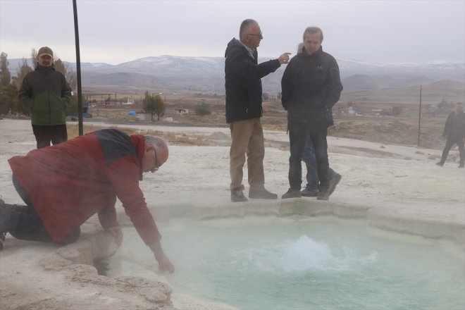 Jeotermal alanda incelemelerde bulunan akademisyenler, kaynakların ekonomik olarak işletilebilirlik potansiyeli, su kalitesi ve mineral durumu gibi özelliklere ilişkin ön çalışma yaptı.