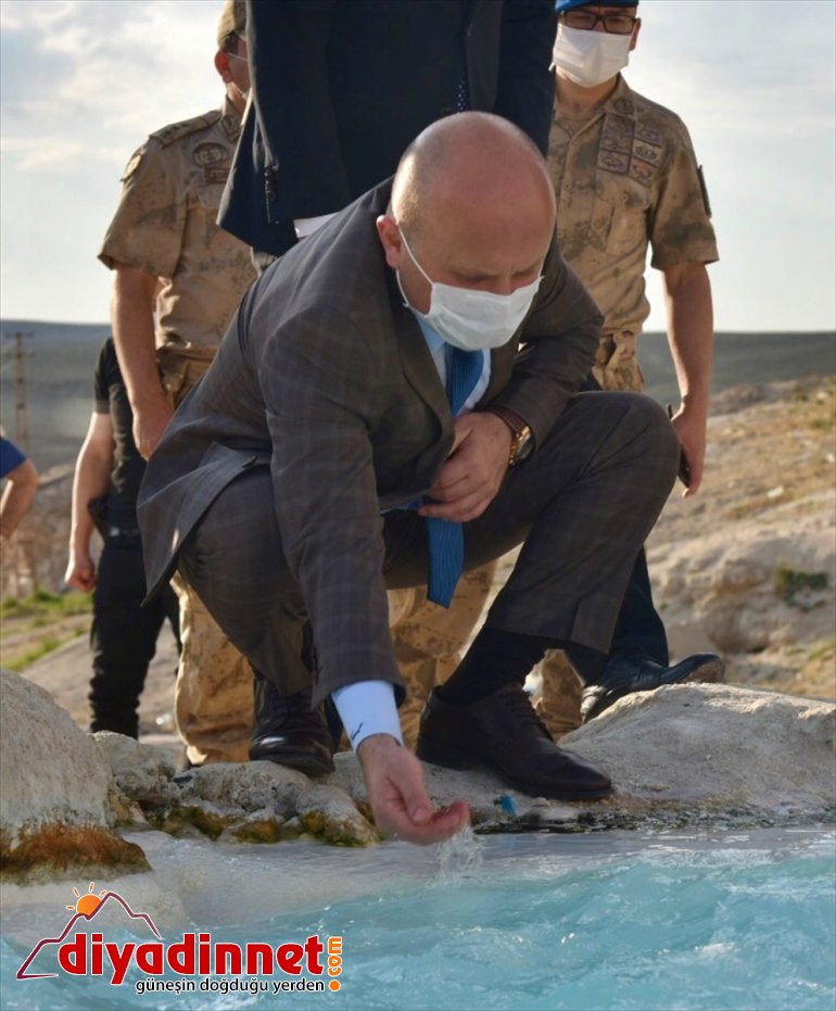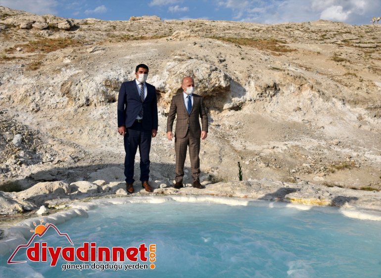 Varol, Diyadin'de yer alan ve kalsiyum, sülfür, magnezyum, kükürt, bikarbonat ve demir açısından zengin olan kaplıcalar ile jeotermal sular hakkında Kaymakamı Hasan Doğan'dan bilgi aldı.