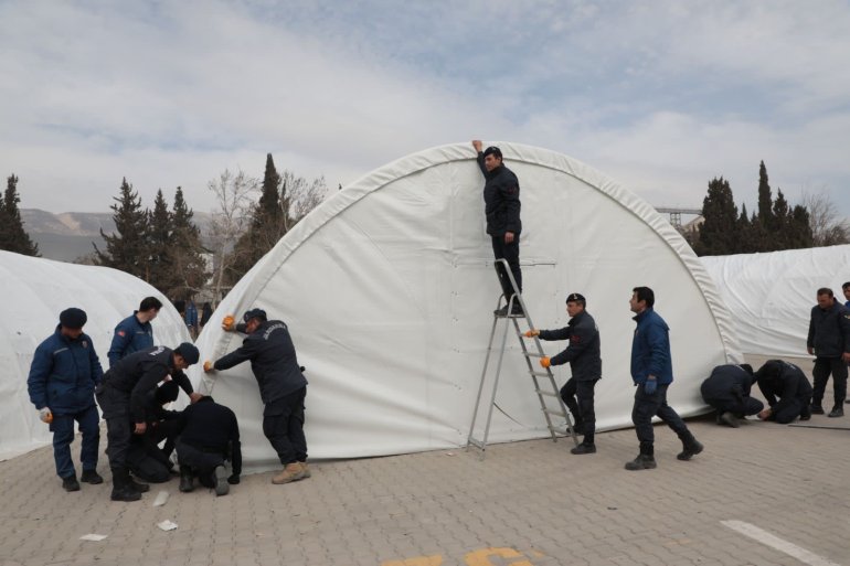 Ağrı - Kahramanmaraş'ta iş yerleri yıkılan veya ağır hasar gören gıda toptancıları ile sebze ve meyve toptancıları için çadır çarşı kurulumu için kolları sıvayan Ağrı Valisi Dr. Osman Varol, çadır çarşının kurulacağı alanını ziyaret ederek incelemelerde bulundu. Daha sonra altyapı çalışmaları tamamlanan Karacasu Konteyner Kent 3. Etapta incelemeler gerçekleştiren Vali Varol, çadırlarda yaşayan vatandaşların yakın zamanda konteyner kente nakillerinin yapılacağını ifade etti. Burada prefabrik evlerin yapılacağı Karacasu 4. etap alanında devam eden altyapı ve çevre düzenleme çalışmalarını yakından takip eden Vali Varol, devam eden çalışmalar ile ilgili yetkililerden bilgi aldı.
