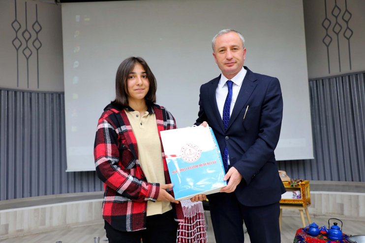 Program kapsamında, "Dilimizin Zenginlikleri" projesi doğrultusunda lise öğrencileri arasında düzenlenen "İstiklal Marşı'ndan Hareketle Cümle-Afiş Hazırlama Yarışması"nda birinci olan 15 Temmuz Şehitleri Anadolu Lisesi öğrencisi Gamze Taştan'a ödülü, İl Milli Eğitim Müdürü Hasan Kökrek tarafından takdim edildi.