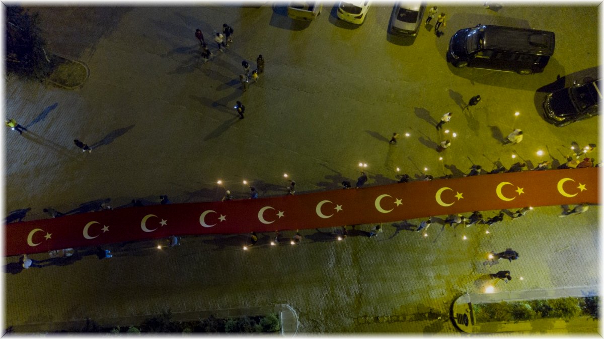 Bitlis'in Ahlat ilçesinde, Malazgirt Zaferi'nin 950. yıl dönümü etkinlikleri kapsamında 150 metre uzunluğundaki Türk bayrağıyla "Fener Alayı" yürüyüşü yapıldı.