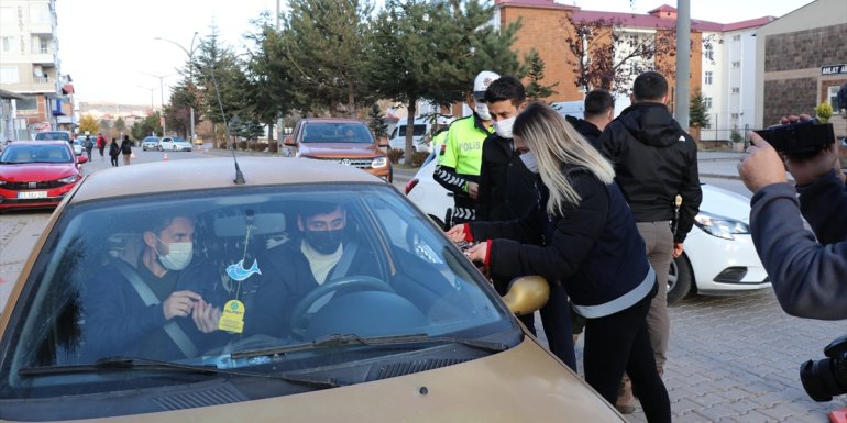 Emniyet Müdürlüğü önündeki uygulamaya katılan Kaymakam Fikret Dağ, sürücüleri emniyet kemerinin önemi ve trafik kurallarıyla ilgili bilgi verdi.