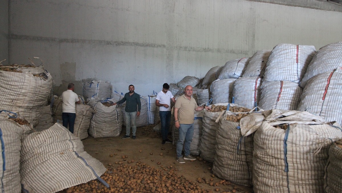 BİTLİS (AA) - Bitlis'in Ahlat ilçesinde çiftçiler, depolarda bekletilen patateslerin alınması için destek bekliyor.