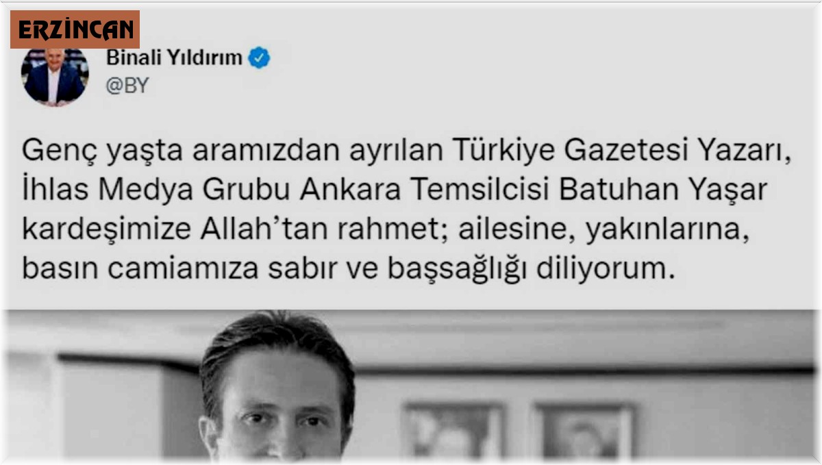 Yıldırım paylaşımında, "Genç yaşta aramızdan ayrılan Türkiye Gazetesi Yazarı, İhlas Medya Grubu Ankara Temsilcisi Batuhan Yaşar kardeşimize Allah'tan rahmet; ailesine, yakınlarına, basın camiamıza sabır ve başsağlığı diliyorum." dedi.