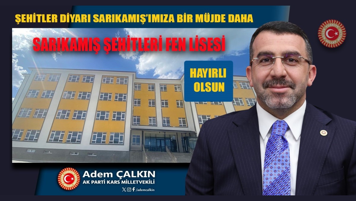 KARS (İHA) - AK Parti Kars Milletvekili Adem Çalkın sosyal medya hesabından yaptığı açıklamada, "Söz verdiğimiz gibi, eğitim yatırımlarımıza devam ediyoruz. Sarıkamış Şehitleri Fen Lisesi, şehitler diyarı Sarıkamış'ımıza hayırlı, uğurlu olsun. Toplamda 24 derslik ve 200 öğrenci kapasiteli pansiyonu bulunan okulumuz 2025-2026 eğitim öğretim yılından itibaren eğitim verecek. Sarıkamış ilçemize ve eğitim camiamıza hayırlı olmasını diliyor, konu ile ilgili desteklerini esirgemeyen başta Milli Eğitim Bakanımız Sayın Prof. Dr. Yusuf Tekin ve emeği geçen herkese teşekkür ediyorum" dedi.