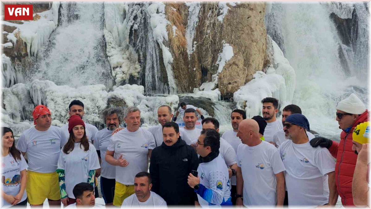 Van'ın kış turizmine dikkat çekmek için hava sıcaklığının eksi 15 dereceyi gördüğü bölgede Van Gölü Aktivistleri Derneği üyeleri, kısmen donan şelaleye girerek eğlenceli dakikalar geçirdi.
