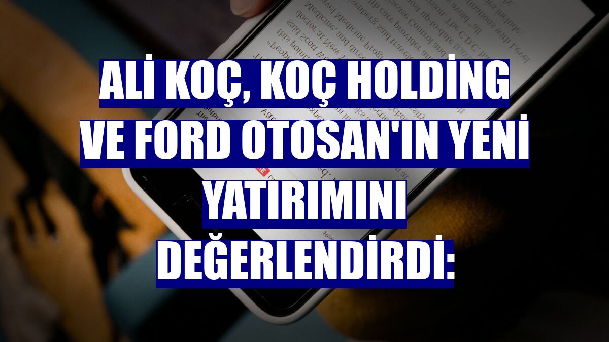 Koç Holding Yönetim Kurulu Başkan Vekili ve Ford Otosan Yönetim Kurulu Başkanı Ali Y. Koç, Koç Holding ve Ford Otosan'ın bugün eş zamanlı yaptığı açıklama ile duyurduğu, Türkiye'nin otomotiv endüstrisinde rekabet gücünü artıracak iki büyük yatırıma ilişkin değerlendirmelerde bulundu.