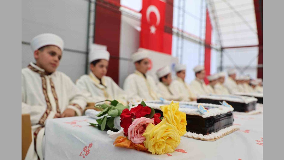 Elazığ'ın Akçakiraz beldesindeki Altınçevre Yatılı Erkek Kur'an Kursu, hafızlıklarını tamamlayan 22 öğrenci için anlamlı bir tören düzenledi. Her hafız için özel hazırlanan, isim ve fotoğraflarının yer aldığı pastalar duygusal anlara sahne oldu.