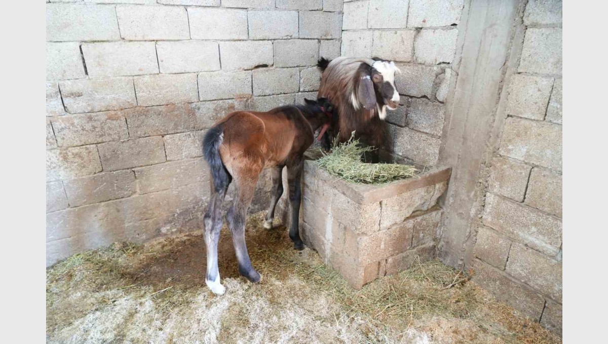 Muş'ta yavrusunu kaybeden bir keçi, annesi doğumda ölen bir tayı sahiplenerek ona sütünü verdi. Farklı türden olmalarına rağmen aralarında kurulan bu bağ, adeta annelik içgüdüsünün sınır tanımadığını gösterdi.
