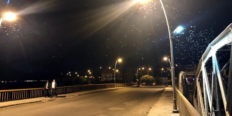 Mayıs sineklerinin sayısı gece saatlerine doğru artarken, vatandaşlar onların uçuşlarını ilgiyle izledi.