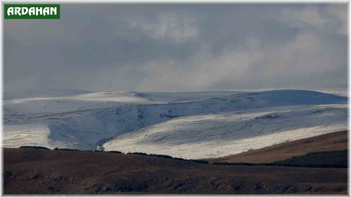 Ardahan'ın yüksek kesimlerinde etkili olan kar yağışı, dağları beyaza bürüdü.