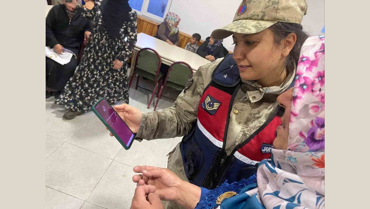 KADES'in cep telefonuna indirilmesi, uygulamanın cep telefonuna indirildikten sonra nasıl kullanılacağı ve sağladığı kolaylıklar hakkında bilgiler veren Jandarma ekipleri, uygulama ile ilgili tanıtım broşürü dağıttı.