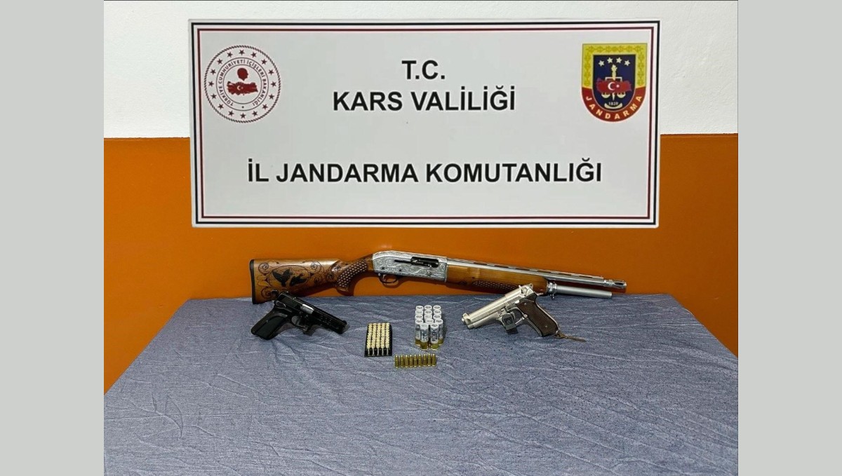 Düzenlenen operasyonda şüphelinin evinde yapılan aramada, 2 ruhsatsız tabanca, 2 tabanca şarjörü, 59 tabanca fişeği, 1 av tüfeği ve 14 av tüfeği fişeği ele geçirilerek muhafaza altına alındı.