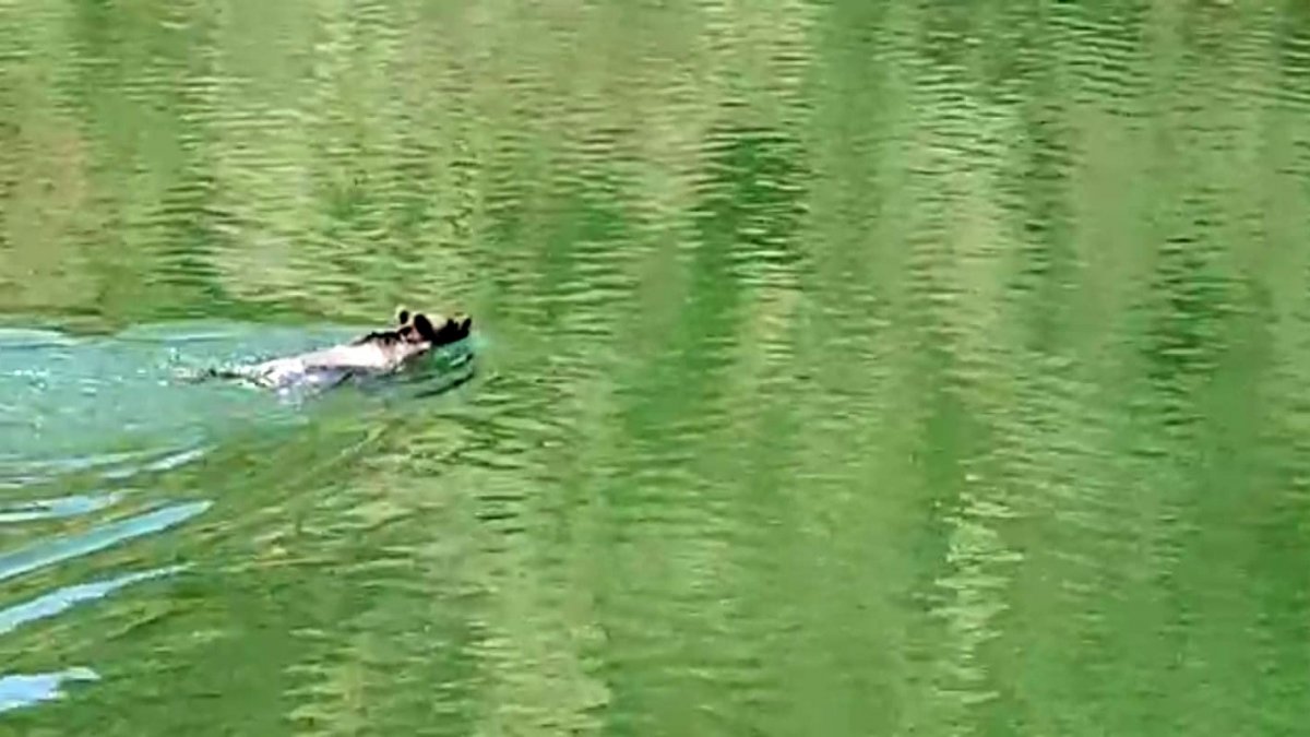 Erzurum'un İspir ilçesinde hava sıcaklıklarının artmasıyla sıcaktan bunalan bir ayı baraj göletine girerek yüzdü. Ayının yüzdüğü anlar bir vatandaşın cep telefonu kamerasına yansıdı.