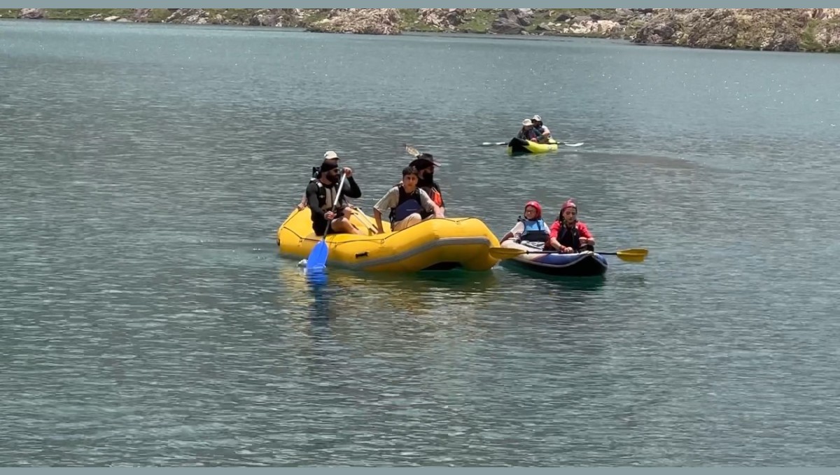 HAKKARİ (İHA) - Kültür ve Turizm Bakanı Mehmet Nuri Ersoy, Hakkari programı kapsamında Yüksekova ilçesinde bulunan ve 3 bin 400 rakımlı İkiyaka Dağları'ndaki Sat Buzul Gölleri bölgesini ziyaret etti. Hakkari Valisi ve Belediye Başkan Vekili Ali Çelik'ten bölge hakkında bilgi alan Bakan Ersoy, botla gölde gezinti yaparak kürek çekti. Ziyaret sırasında dengbejlerin seslendirdiği eserleri dinleyen Ersoy, farklı illerden gelen doğaseverlerle de bir araya geldi. Doğaseverler ve sporcular gölde bot ve kanolarla gezinti yaparken, yamaç paraşütü gösterisiyle gökyüzü renklendi.