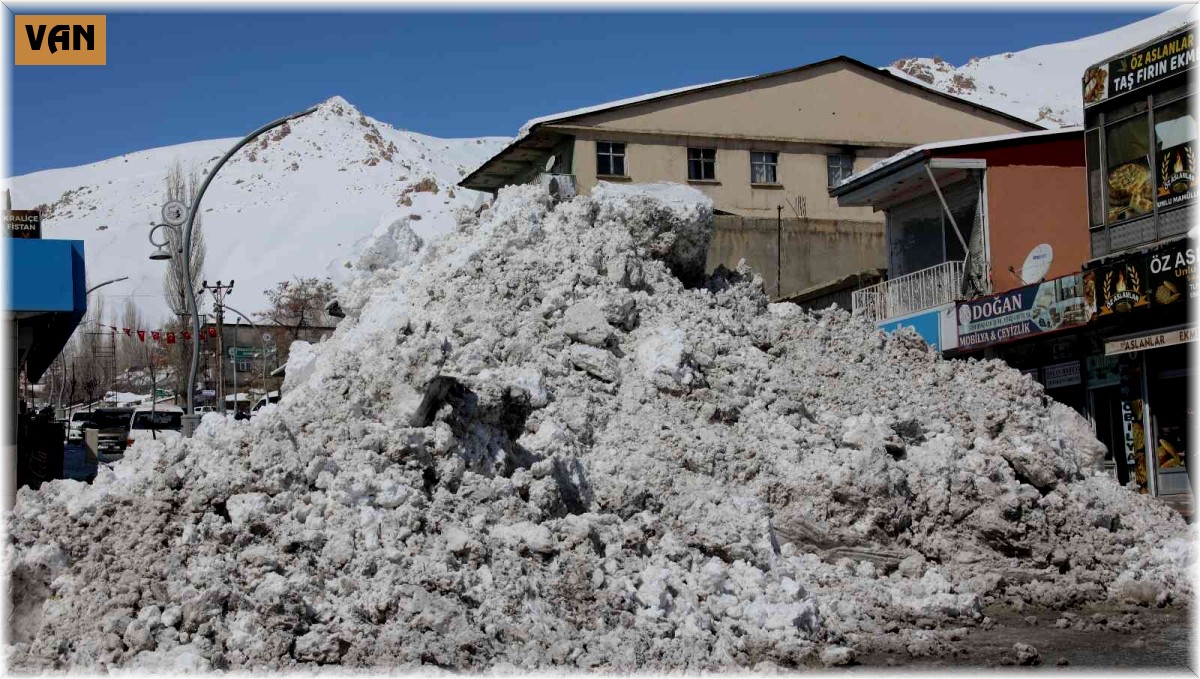 VAN (İHA) - Van'ın Başkale Belediyesi ekipleri, mart ayına rağmen çarşı merkezinde biriken karı kamyonlarla ilçe dışına taşıyor.