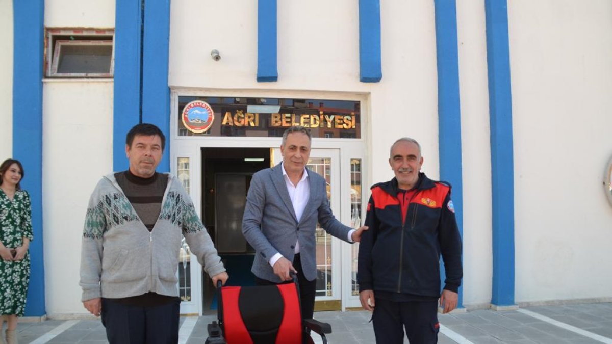 Ağrı Belediye Başkanı Metin Karadoğan, 1-16 Mayıs Engelliler Haftası'nda, engelli bir vatandaşa tekerlekli sandalye hediye etti.