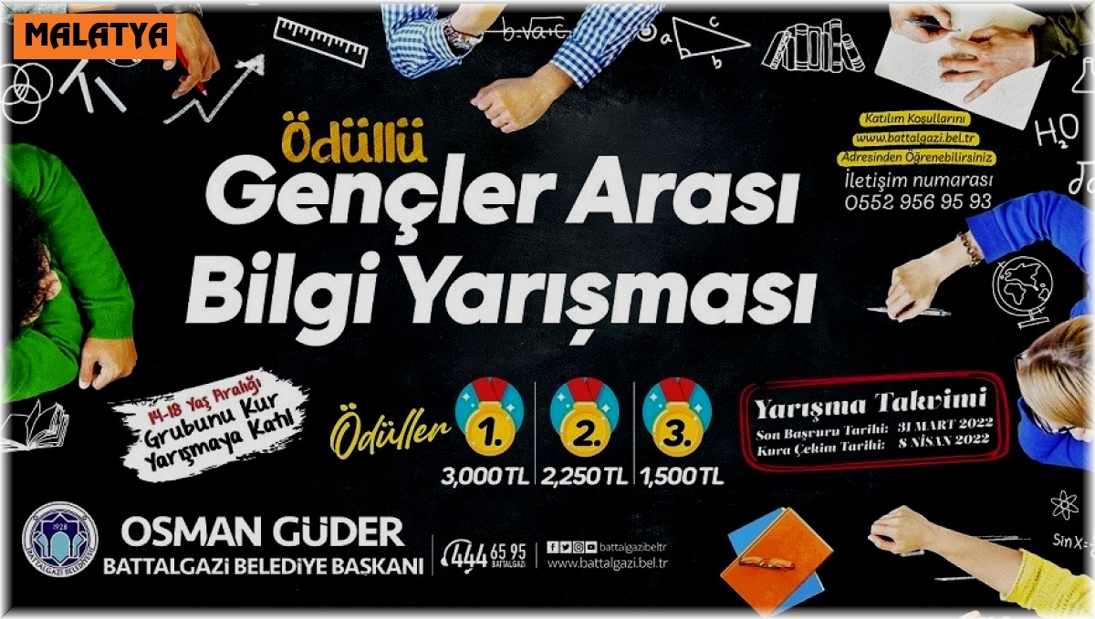 Malatya Battalgazi Belediyesi tarafından gençler arasında bilgi paylaşımını yaygınlaştırmak, gençlere yarışma kültürünü kazandırmak amacıyla düzenlenecek olan 3 bin TL ödüllü bilgi yarışmasına başvurular devam ediyor.