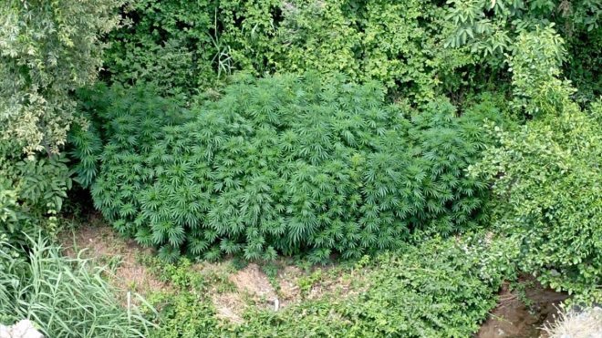Operasyonda iki tarlaya ekilmiş 2 bin 885 kök kenevir bitkisi ele geçirildi.