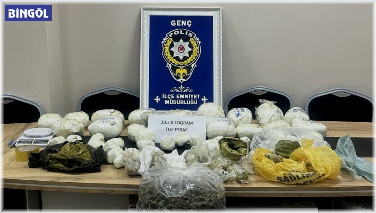 Bingöl'ün Genç İlçesinde polis ekipleri tarafından yapılan operasyonda 25 kilo 530 gram uyuşturucu madde ele geçirildi.