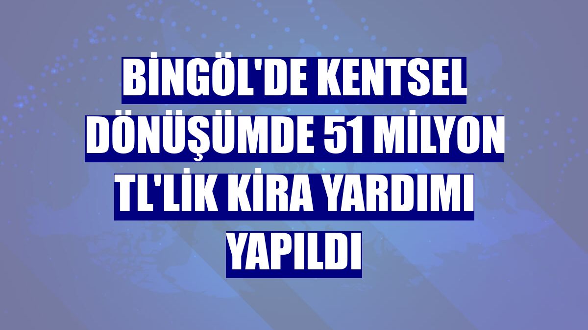 Bingöl'de Kentsel Dönüşüm Kanunu çerçevesinde 5 binin üzerindeki vatandaşa toplamda 51 milyon 818 bin TL kira yardımı yapıldı.