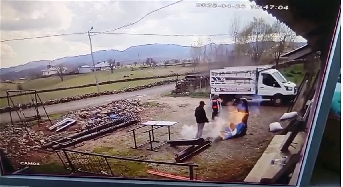 BİNGÖL (AA) - Bingöl'ün Karlıova ilçesinde varilin spiral makinesiyle kesildiği sırada patlaması güvenlik kamerasınca kaydedildi.