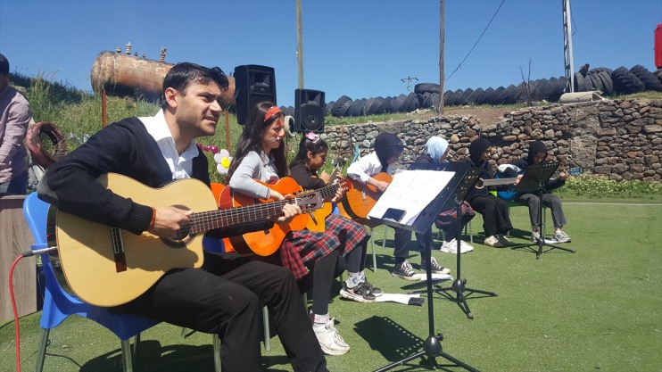Özel bir rehabilitasyon merkezinde düzenlenen etkinlikte, Dilektepe Ortaokulunda müzik öğretmeni Muhittin Ülger öğrencileriyle mini bir konser verdi.