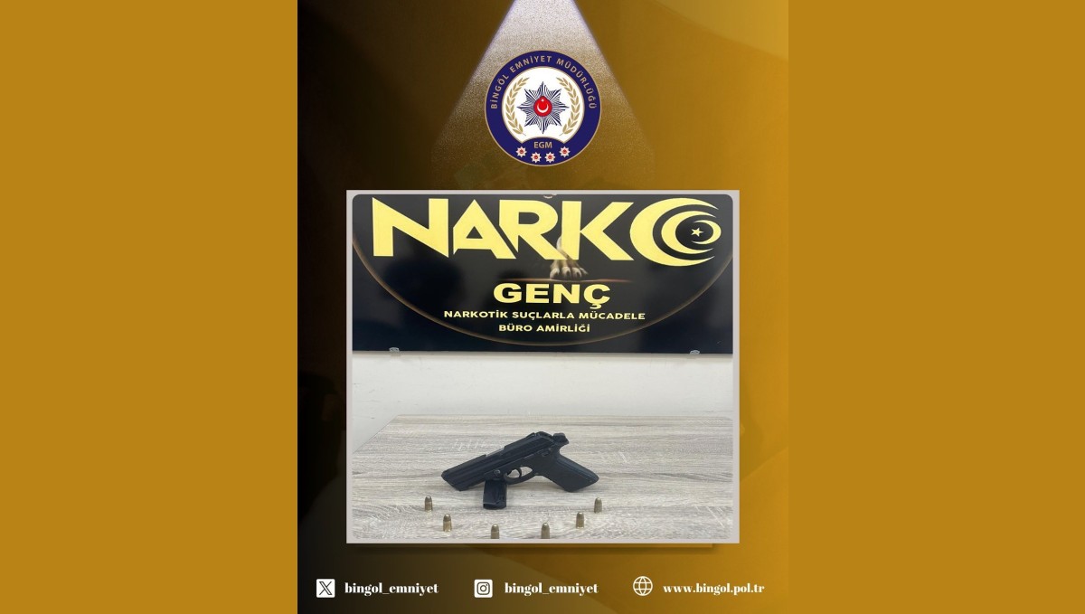 BİNGÖL (İHA) - Bingöl Narkotik Suçlarla Mücadele Şube Müdürlüğüne bağlı Genç Büro Amirliği ekiplerince uygulama esnasında şüphelenilen 1 şahıs üzerinde 1 adet ruhsatsız tabanca, 1 adet şarjör ve şarjörü basılı 6 adet fişek ele geçirildi. Şahıs hakkında işlem başlatıldı.