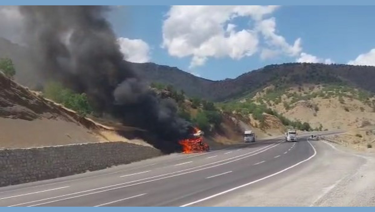 BİNGÖL (İHA) - Edinilen bilgiye göre, Bingöl-Diyarbakır karayolunda dorsesiz halde seyir halinde olan tırın kupasından bir anda dumanlar çıkmaya başladı. Sürücü sağa çekerek araçtan aşağı indi. Sürücünün inmesinin ardından bir anda alev topuna dönen tır, yanarak kullanılamaz hale geldi. Haber verilmesi üzerine olay yerine itfaiye ve jandarma ekipleri sevk edildi. İtfaiye ekiplerinin müdahalesi ile yangın söndürüldü.