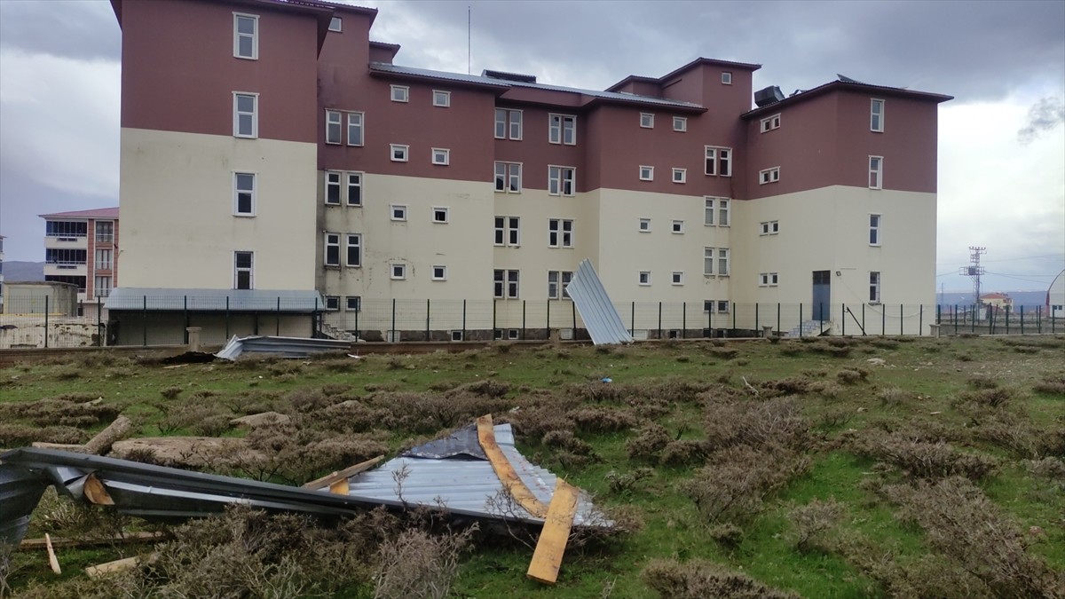 BİNGÖL (AA) - Bingöl'ün Karlıova ilçesinde şiddetli rüzgar nedeniyle, kullanıma kapalı kız öğrenci yurdunun çatısı uçtu.