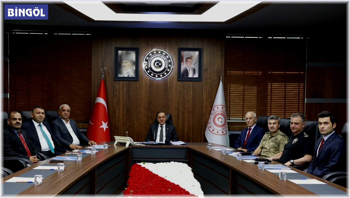 Bingöl: Bingöl Üniversitesinde eğitim öğretimin huzur ve güven ortamı içerisinde sürdürülebilmesi amacıyla 'Üniversite huzur ve güveni artırma il komisyonu toplantısı' yapıldı. Toplantıya, Vali Ahmet Hamdi Usta'nın yanı sıra Bingöl Üniversitesi Rektör Yardımcısı Prof. Dr. Hasan Çiftçi, Belediye Başkan V. Yaşar Demir, İl Emniyet Müdürü Şükrü Orhan, İl Jandarma Komutanı Tuğgeneral Bilgihan Yeşilyurt ve İl Gençlik ve Spor Müdür V. Yunus Bulmuş katıldı.