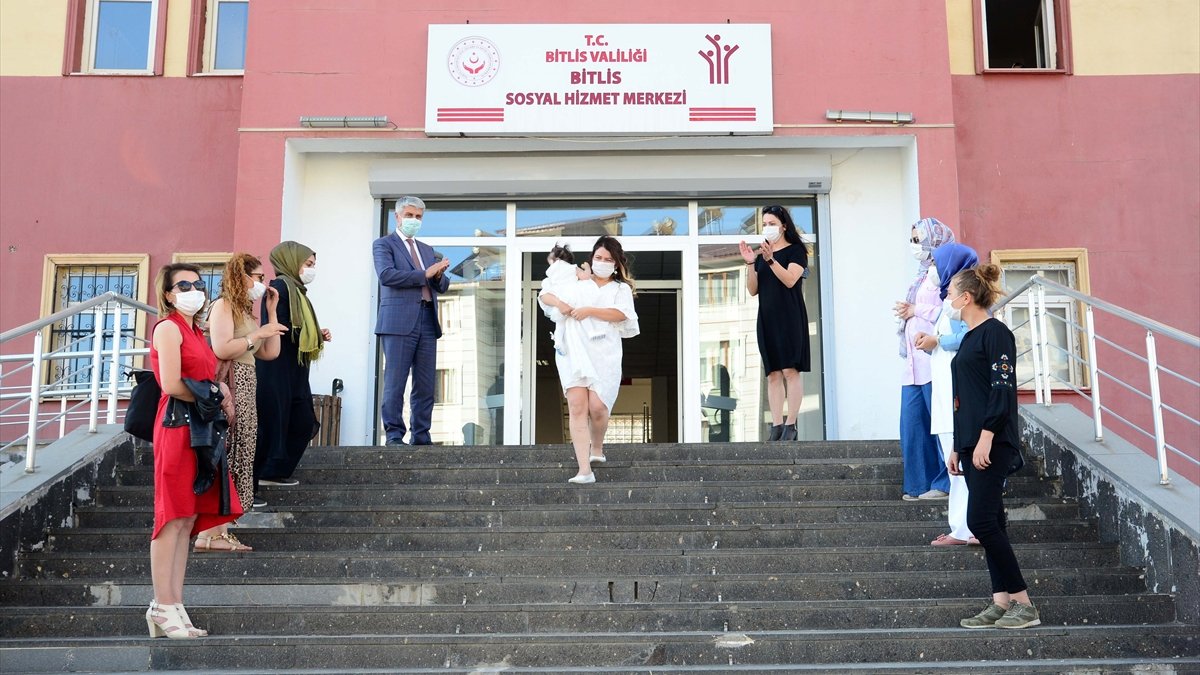 Bitlis: Aile, Çalışma ve Sosyal Hizmetler Bakanlığının "Koruyucu Aile" projesi kapsamında Bitlis Çocuk Evleri Sitesi'nde kalan bir yaşındaki Emine Adal, yeni yuvasına kavuştu.