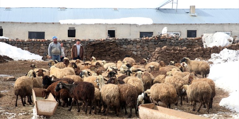 Kış mevsiminin çetin geçtiği bölgede hayvanlarının bakımını ihmal etmeyen besiciler, dünyaya gelen "baharın müjdecisi" kuzuları, sütle beslenebilmeleri için günde iki kez anneleriyle buluşturuyor.