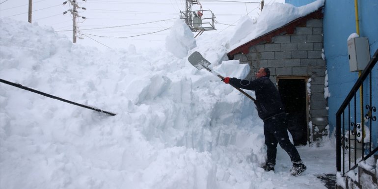 Tek katlı evlerin de karla kaplandığı köyde, evlerin çevresinde ve damlarda biriken karlar da zorlukla temizleniyor.